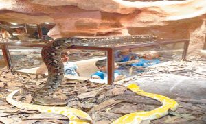 تضم حديقة التماسيح بمدخل مدينة أكَادير عددا من الثعابين و الأفاعي العملاقة التي تم جلبها إلى المغرب من آسيا وأمريكا اللاتينية وأ وروبا ومن أشهرها أفاعي الأناكوندا، حيث تعيش في مغارة مخصصة لها تم افتتاحها في شهر مارس 2019.