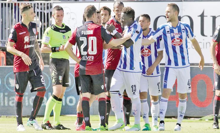فخلال مباراة فريقه بيسكارا أمام كالياري، قبل أسبوعين، خرج اللاعب الغاني سولي مونتاري من الملعب، احتجاجا على هتافات عنصرية وجهتها إليه جماهير الفريق المضيف.