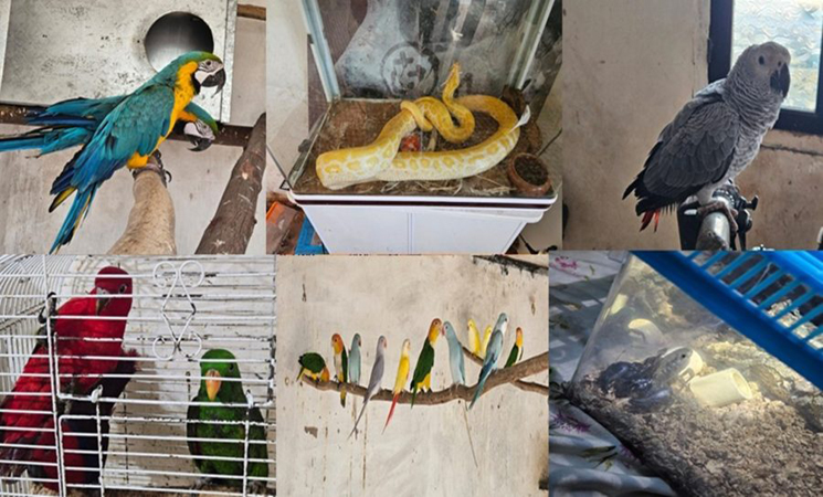 ووفق بلاغ رسمي للوكالة، تم العثور داخل المستودع على قفصين كبيرين يضمان ما مجموعه 201 طائر، بالإضافة إلى كائنات حية أخرى نادرة وخطرة. ومن بين الأنواع المحجوزة: ببغاوات رمادية إفريقية، وطيور من نوعي اللوري والكايك، فضلاً عن ثعبان من فصيلة البايثون، وعقرب من نوع «سكوربيون»، وعنكبوت ضخم من فصيلة الرتيلاء.